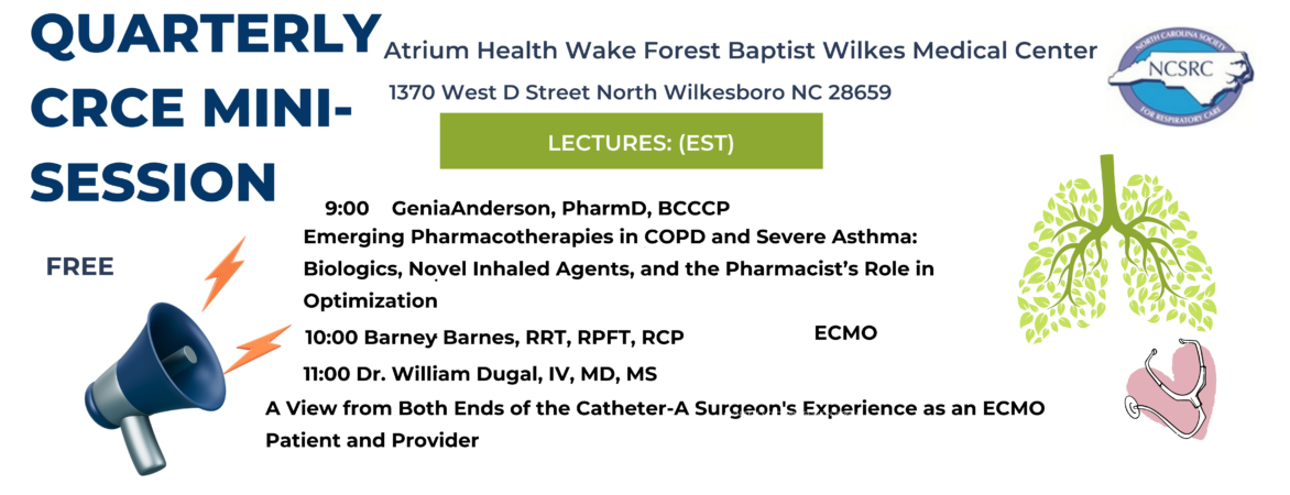 Important NewsGale Gane Educator of The Year: Ashtyn Paff Practitioner of The Year: Candace GIlbert Harvey Jacobs Leadership Award: Nikki Barrett Physician of the Year: Dr. Aaron Blackshaw Garry Dukes Award: Trisha Miller You are invited to take this: Short Survey intended to gain information for STUDENT Activities at future Annual Symposiums We would like ALL STUDENTS, GRADUATES, AND EDUCATORS OF ENTRY INTO PRACTICE PROGRAMS WHO DID or DID NOT ATTEND THE OCTOBER 2025 ANNUAL SYMPOSIUM to complete this 12 question survey by February 27th, so the […] Registration Link: https://forms.office.com/r/7SkbZx4bh8 CRCE Quarterly Mini-Sessions Link: https://teams.microsoft.com/l/meetup-join/19%3ameeting_YWIxMTVhZjEtOGMzNC00YTdhLTgyMDAtMGZiMmUyZjQ0Yzdk%40thread.v2/0?context=%7b%22Tid%22%3a%224ae416a0-1ff1-4e4e-9114-d5e93922581a%22%2c%22Oid%22%3a%22f4d0990d-5522-416d-9518-efd1020cb016%22%2c%22prid%22%3a%2205656dc9-e806-4e1f-871b-1041c58c97d5%22%2c%22isPublic%22%3atrue%7d NCSRC BOD Meeting Link: NCSRC December 12, 2025 BOD Meeting | Meeting-Join | Microsoft Teams Evaluation Link: Will not open until December 12 @ 12:00 PM and closes December 29 @ 1145 PM ATTENDANCE AND COMPLETION ARE REQUIRED FOR CRCE Friday December 12, 2025 EVALUATIONS (Copy) – […] The NCSRC Open Forum will be held during the Annual Symposium on Thursday October 9th 2025 from 4:00-5:00pm. You’re invited to submit and present an abstract related to all areas of Respiratory Care or case study. Benefits of Research Poster Presentations The Open Forum abstract presentation is your opportunity to: * Be published on the […] ZOOM Links for Virtual Attendance: Registration is required and Attendance will be taken and is required along with the completed Evaluations and any necessary activities for the Non-Traditional CRCE Thursday Link https://zoom.us/j/92614467261?pwd=WRKD3CZcLrlJJlKqJ4E4mE2Ib0b6dR.1 Friday Link https://zoom.us/j/94196858828?pwd=8PNXvMmil4avSI1buQeVZPjchEDh8c.1 Non-traditional Links Trach Navigator: The New Role by Jennifer Hannosh, RRT https://zoom.us/rec/share/gYbWWOuOQCfKmPd6ihlYSXpYLajGrwkQr9L16SHgdrTQGzQQp8YhqG0riFIp1jAM.XSAAzxaYOCOBlQA5 Passcode: &81rK#3Q Voices from the Ventilator: ICU Experiences […] New Job Posting July 7, 2025 See details under “Jobs” Link: https://www.aarc.org/membership/membership-overview/aarc-disaster-relief-fund/ READ ALL NEWS » |